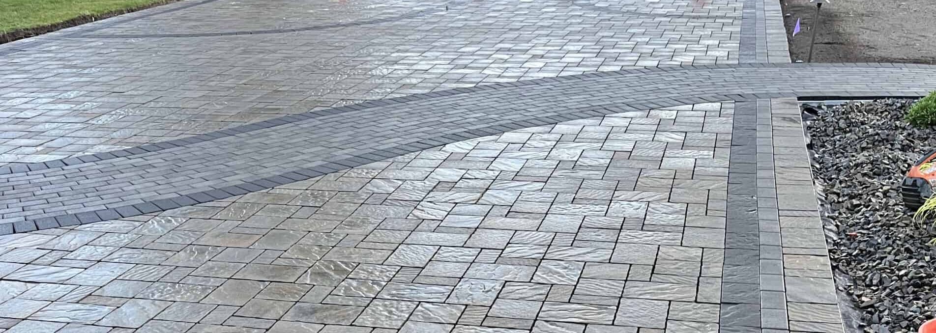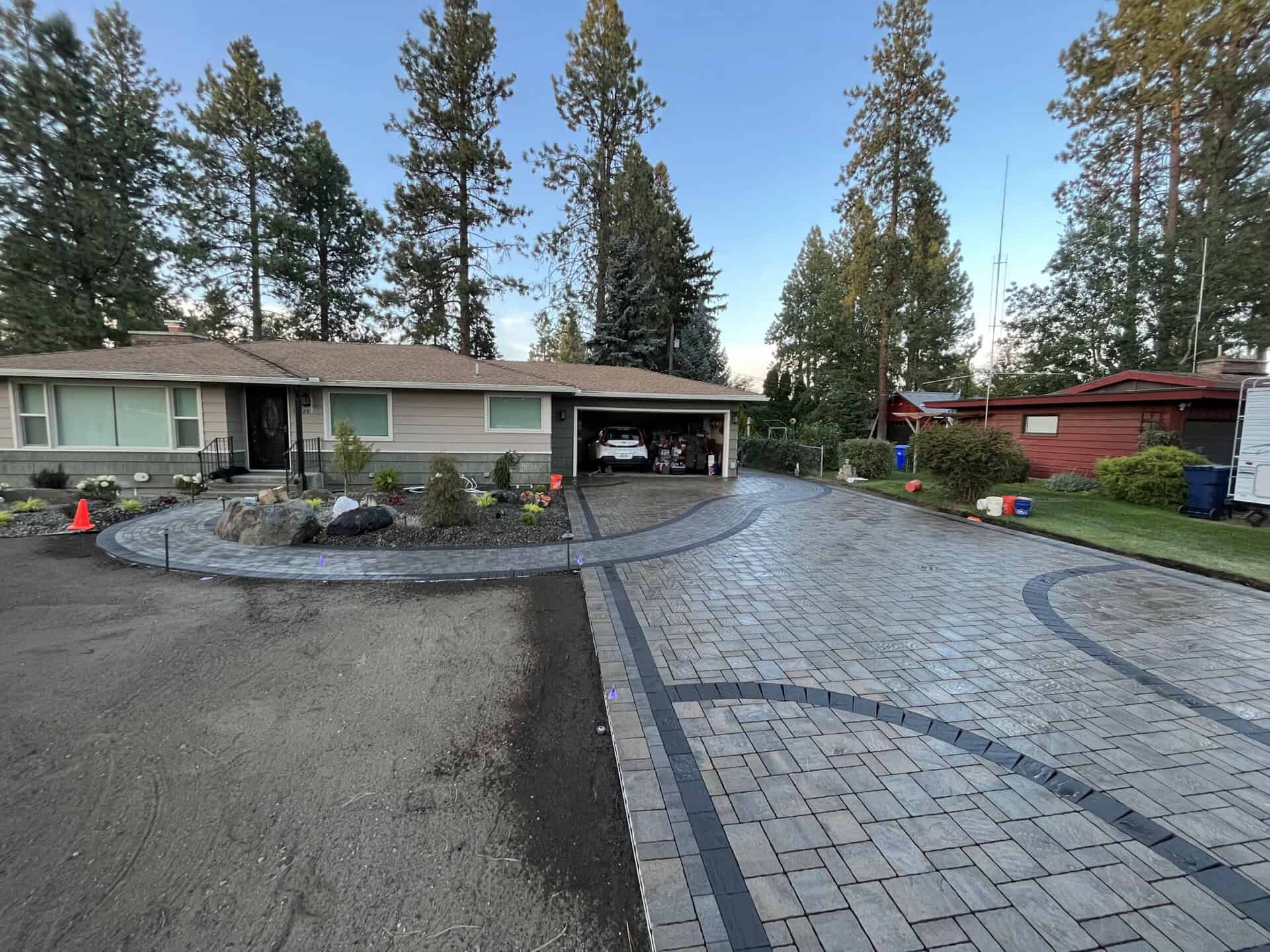 The Slatewave project showcases a beautifully designed custom paver driveway that seamlessly blends form and function. Featuring precision-cut stone pavers in a multi-tone color palette, this driveway enhances curb appeal while ensuring long-term durability. A combination of intricate inlay work and striking border accents makes this design a standout feature of the property.